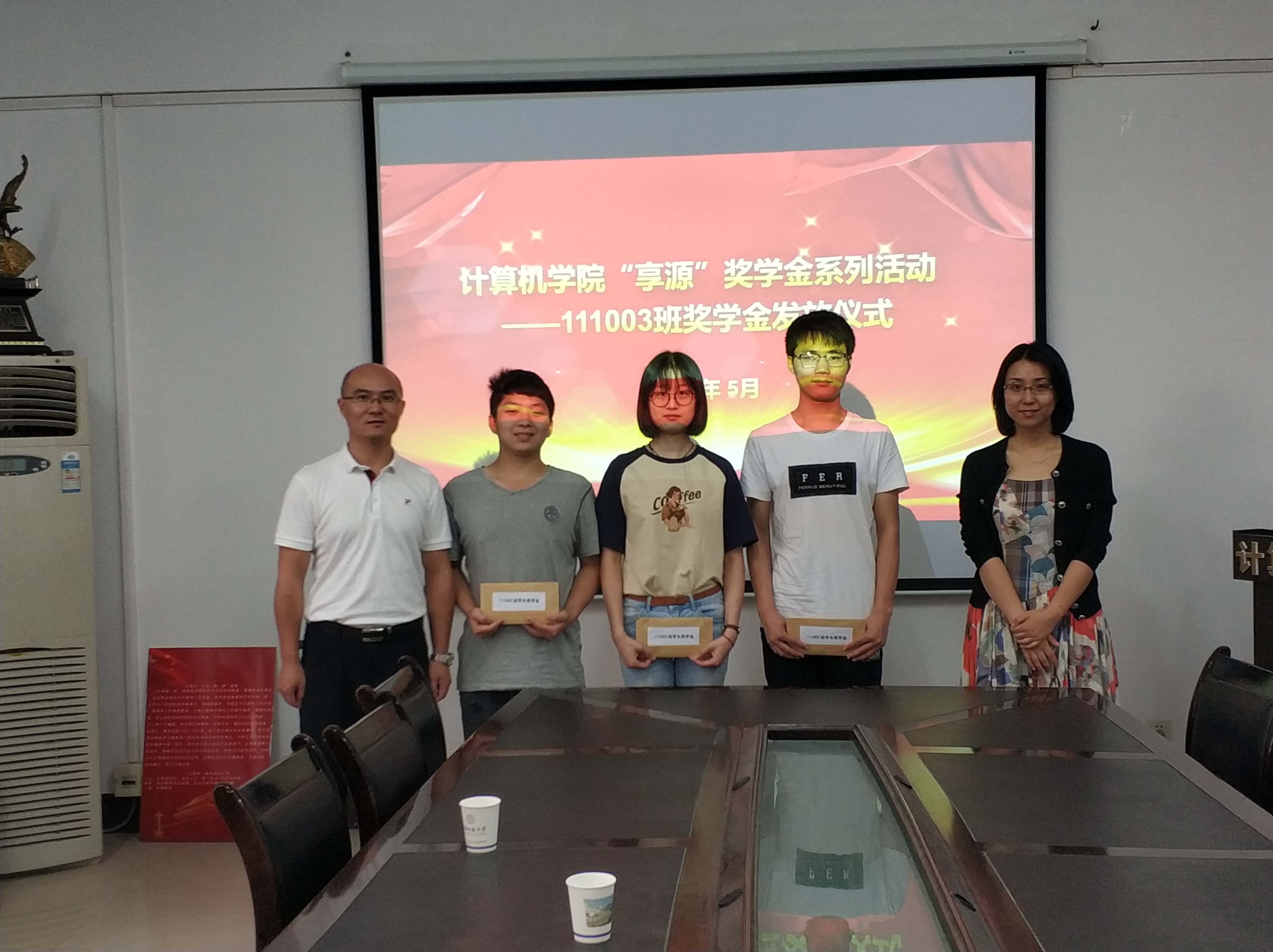 5月28日上午,William威廉英国官网“享源”奖学金系列活动之111003班奖学金捐发放式在北一楼会议室顺利举行。William威廉英国官网教授111003班员工代表龚文引,计算机公司党委副书记傅苑出席此次颁发仪式。