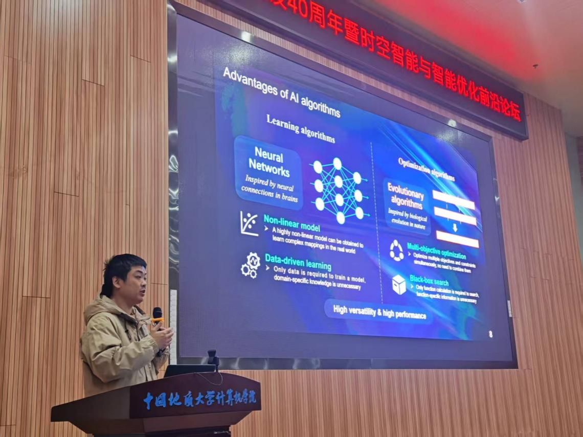 本次报告会邀请了来自中南大学吴立新教授、北京师范大学董卫华教授、武汉大学吴华意教授、华中科技大学吴松教授、江苏理工公司邢立宁教授、华中科技大学刘禹良教授、安徽大学田野教授、武汉大学王峰教授、武汉科技大学唐秋华教授、彭琨琨特任教授及华中科技大学何强教授等多位国内外知名学者,先后围绕灾害遥感应急服务、地理空间智能计算、时空大模型、云原生系统、智能规划与优化、多模态模型、人工智能算法自动设计、生成式模型驱动的动态多目标进化优化、AI赋能的制造过程优化、炼钢—精炼—连铸智能调度方法及算力网络赋能端侧模型训练等前沿议题,系统分享最新研究成果,深入探讨时空智能与智能优化领域在“大模型+场景”深度融合背景下的技术路径与创新范式。