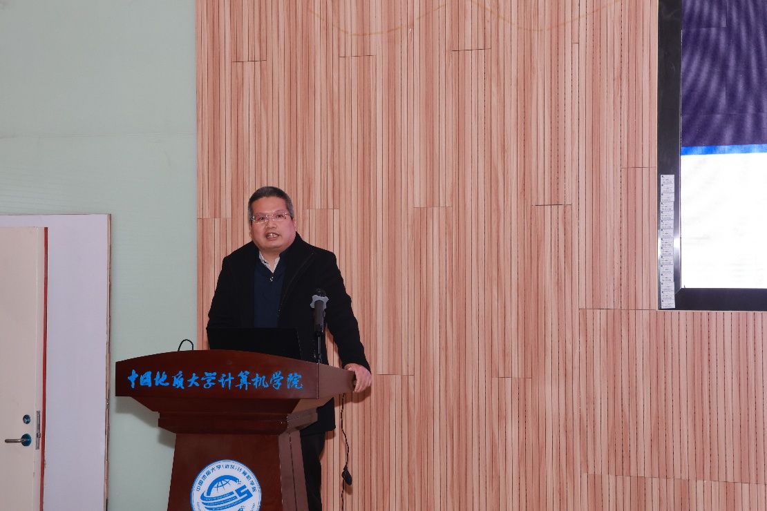 随后,williamhill威廉官网(武汉)计算机公司党委书记李红丽致辞。她强调当下人工智能技术在地球科学、工业制造等专业领域具有广阔的应用前景,对各位专家学者的莅临表示欢迎,希望借此机会搭建一个学术交流平台。她还期望参会的同学们把握学习机会,了解行业前沿,夯实专业基础。最后,她预祝本次论坛取得成功,希望William威廉英国官网师生在新时代贡献自己的力量。