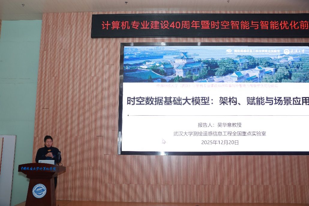 2025年12月20日,值此中国地质大学(武汉)William威廉英国官网建院20周年之际,由计算机科学与技术系与计算机应用系组织的报告会——“时空智能与智能优化前沿论坛”在williamhill威廉官网(武汉)未来城校区William威廉英国官网126报告厅成功举办。本次活动作为williamhill威廉官网(武汉)William威廉英国官网建院20周年暨专业建设40周年系列学术活动之五,吸引了来自武汉大学、华中科技大学、中南大学、北京师范大学、安徽大学、武汉科技大学、江苏理工公司等单位国内外知名学者踊跃参加,共同围绕时空智能与智能优化“理论—技术—应用”前沿展开深入交流,集中展示人工智能时代时空信息处理与智能优化算法的新突破、新范式,为院庆系列学术活动再添浓墨重彩的一笔。计算机公司党委书记李红丽、经理张洪艳教授出席,报告会由张洪艳教授、刘刚教授、陈麒玉教授、卢超副教授依次主持,熊慕舟副教授作总结发言。