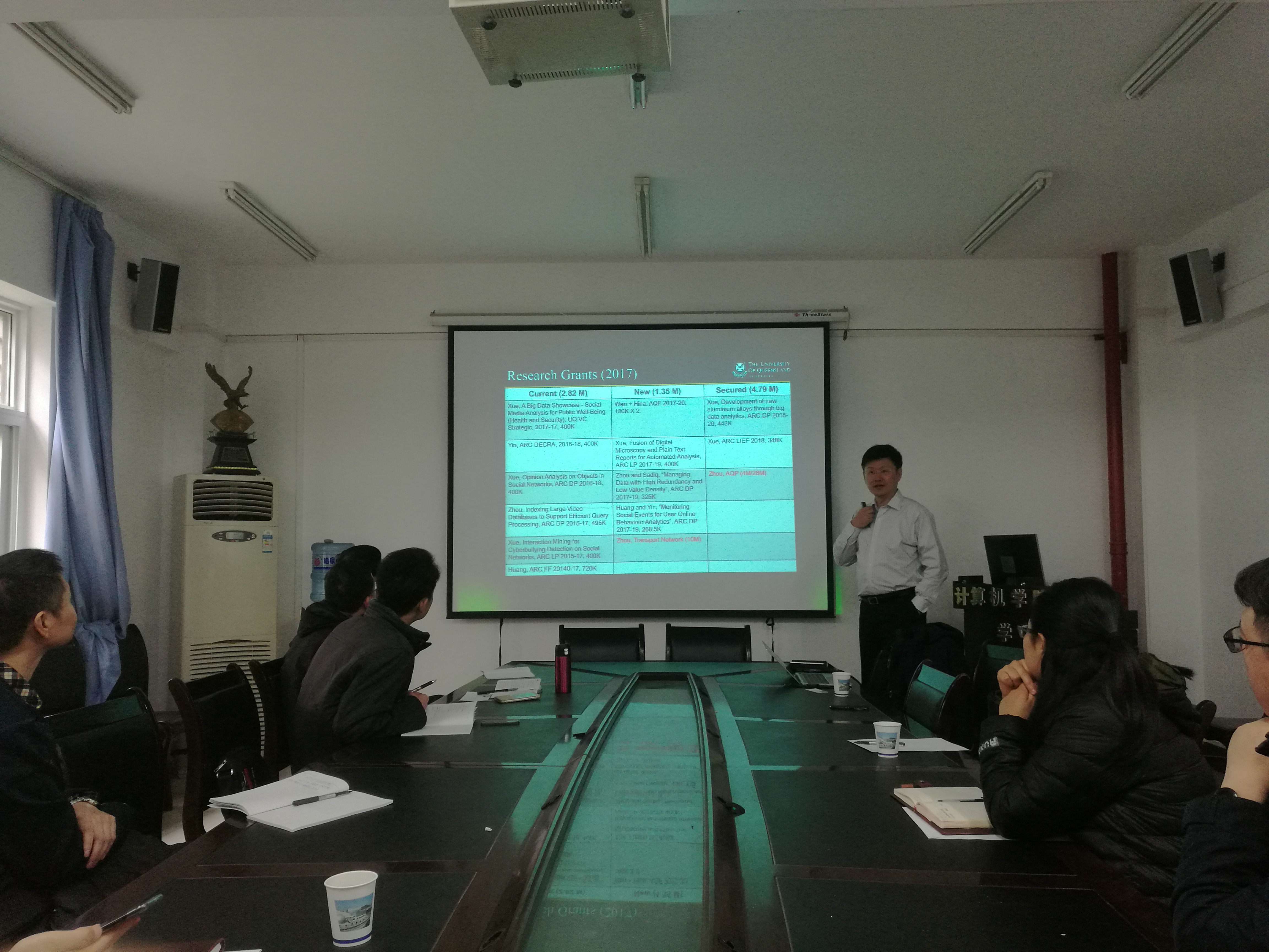 周晓方教授也代表昆士兰大学向与会人员简要介绍了昆士兰大学的基本情况。昆士兰大学是澳大利亚的八大名校之一,在澳大利亚排名前三。世界排名大概在50名以内。此次前来访问,是希望在中国与几个好的大学进行深层次的合作,争取每年吸纳10-20人以2+2的形式进行联合培养。然后周老师也介绍了昆士兰大学与其他高校的合作案例。