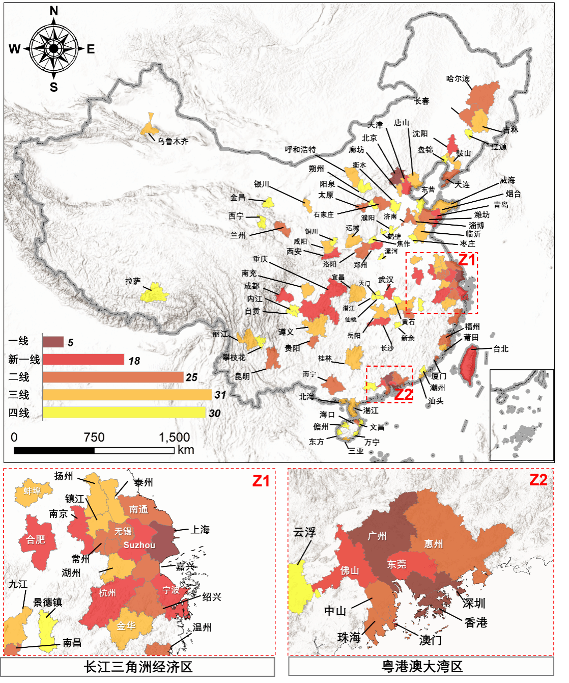 图2 制图区域-本研究在全国109个城市绘制了1.1亿栋建筑的功能图