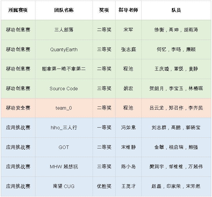 公司团队具体获奖名单如下: