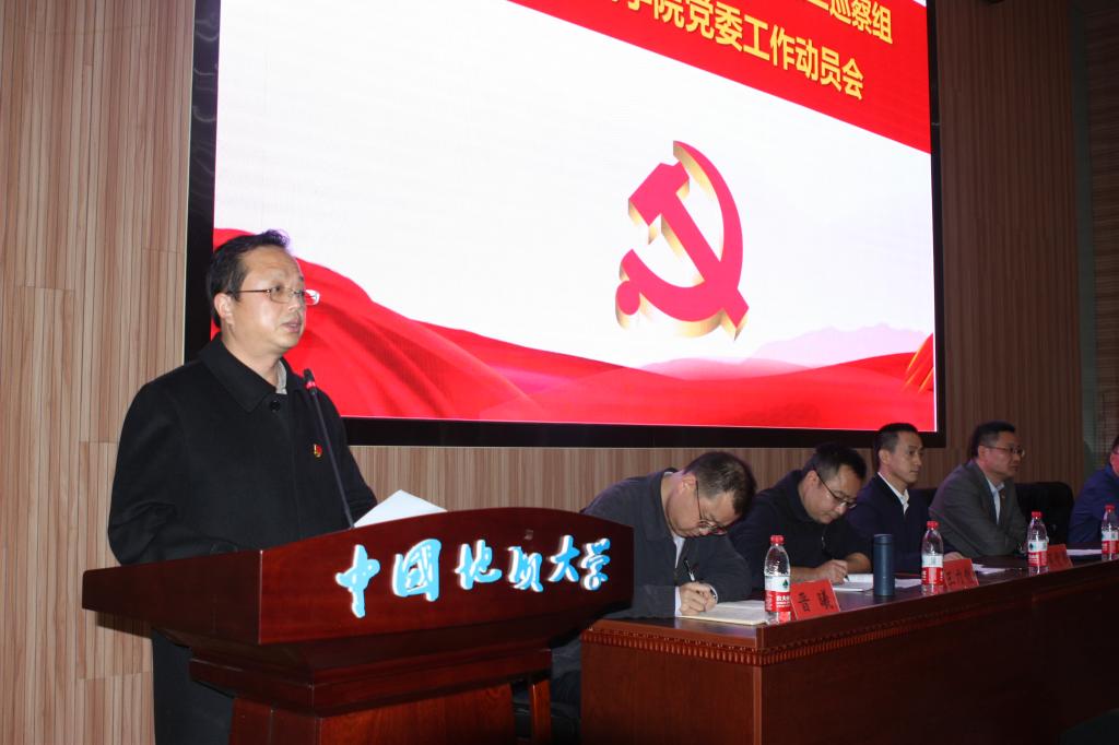 副董事长刘杰同志讲话,并提三点工作要求。一是提高政治站位,深化思想认识,高度重视巡察工作;二是坚持问题导向,对标“四个落实”,扎实推进巡察工作;三是强化责任担当,狠抓整改落实,圆满完成巡察工作。他强调,要本着对公司事业认真负责的态度,站在推动“建设地球科学领域国际知名研究型大学”的高度,进一步增强“四个意识”、坚定“四个自信”、做到“两个维护”,进一步强化坚持党对公司工作全面领导的政治自觉,坚持党要管党、全面从严治党,对标对表“四个落实”,圆满完成公司党委赋予的巡察工作任务,以高质量巡察推动高质量发展。