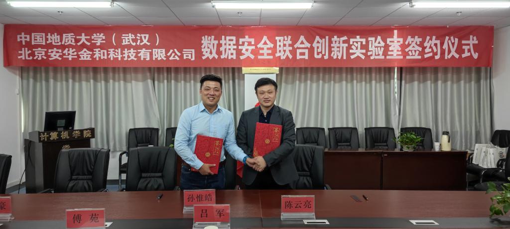 (通讯员:孙彦钦)5月19日上午,公司与北京安华金和科技有限公司(以下简称安华金和)举行数据安全联合创新研究实验室暨产教融合协同育人基地签约仪式。安华金和高级副总裁孙惟皓、华中区总经理万钧、湖北区总经理胡靖,计算机公司党委书记吕军、党委副书记傅苑、副经理陈云亮、胡成玉等人参加签约仪式。
