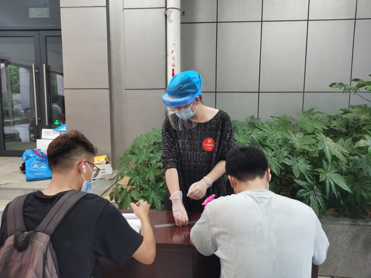 (通讯员:孙彦钦)为积极响应湖北省疫情防控指挥部要求,8月4日至6日,公司完成了南望山校区在校师生及社区居民约1.5万人全员核酸检测。8月3日晚,组织部发布征集志愿者通知,公司党委副书记、纪委书记傅苑,副经理陈云亮,应用系教工党支部书记武云,应用系教师张志庭,科学系副主任梁庆中,2020级辅导员李祥瑞,共6名党员教职工积极报名参加。