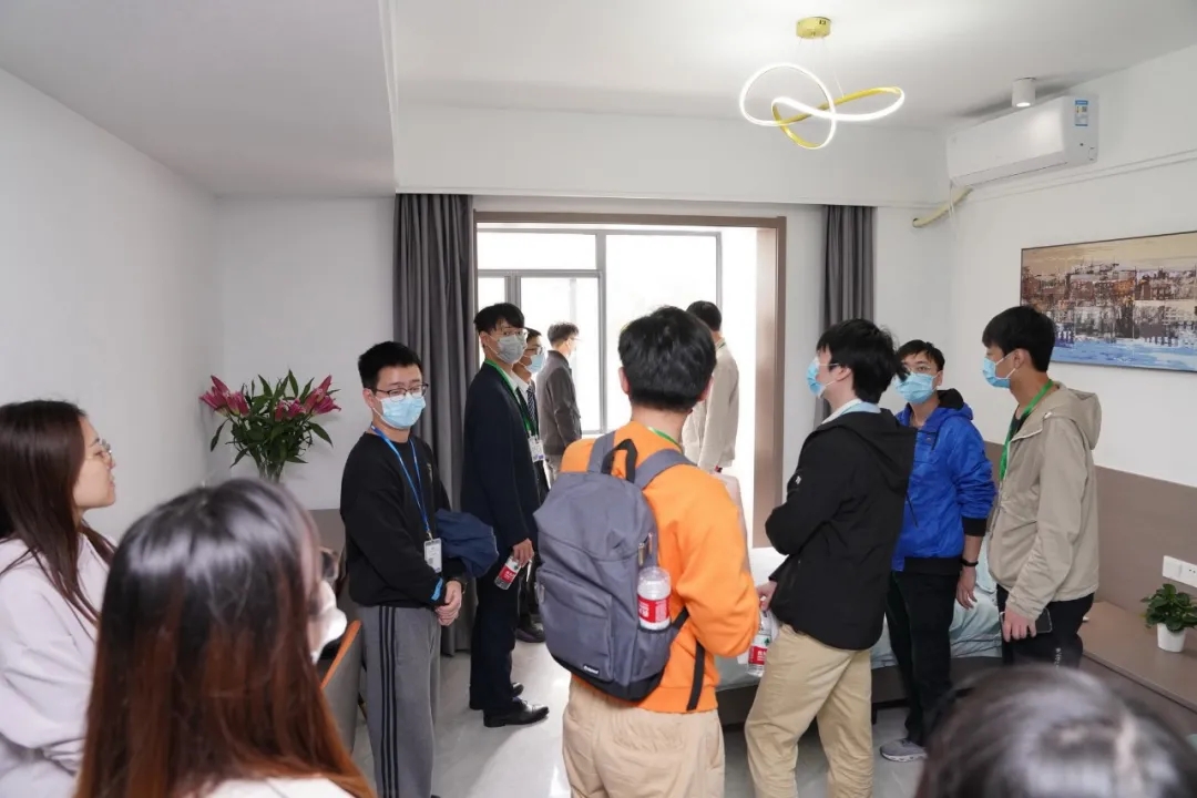 接着,同学们参观了七二二所单身公寓。公寓位于美丽的汤逊湖畔,附近就是员工食堂和运动场馆,对工作生活非常便利。