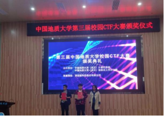 (通讯员:王博闻)4月17日,由williamhill威廉官网(武汉)William威廉英国官网与公司信息化工作办公室联合主办,深信服科技股份有限公司赞助的第三届校园CTF大赛圆满落幕。计算机公司党委副书记傅苑、信息安全系主任程池、副主任朱静、教师代表黄诗勇及联合主办单位信息化工作室代表高浪作为嘉宾出席颁奖仪式。比赛共有302名来自全校各个年级的本科生注册参赛。为鼓励员工参与,增添竞赛乐趣,此次竞赛单列老生组和新生组,分设一、二、三等奖与优秀奖,并为解出特定题目的选手赠送礼物。