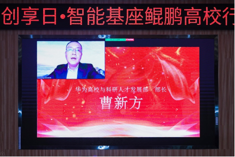 华为高校与科研人才发展部部长曹新方线上致辞。他对出席讲座的老师、同学们表示热烈欢迎,详细介绍华为与各大高校的合作情况,并结合公司实际情况对未来的合作进行了展望。