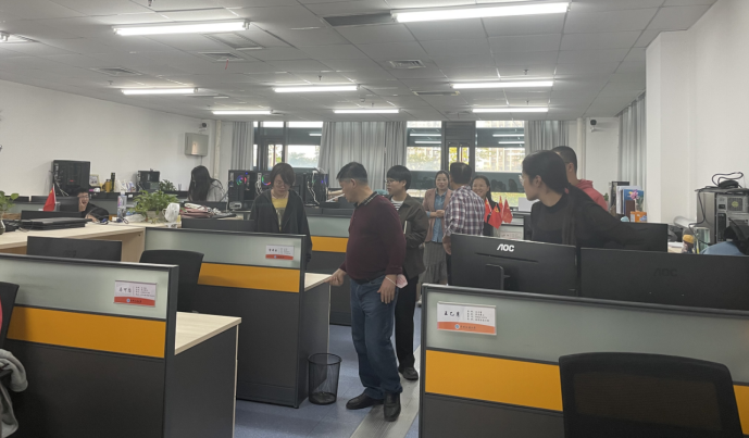 为督促员工养成良好的卫生和生活习惯,创建安全、整洁、文明的学习和生活环境,以全新的面貌迎接公司70周年校庆,2022年11月3日计算机公司党委书记李国昌,实验室主任胡双海,公司团委书记、研究生辅导员李欢欢,院直党支部书记黄燕霞对公司实验室、会议室等进行了卫生检查。