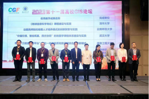 9月23—24日,在甘肃兰州举行的第十一届高校GIS论坛上,williamhill威廉官网(武汉)王力哲教授、陈占龙教授教学团队因其在军事地质信息化人才培养领域的贡献获2023中国高校GIS论坛优秀教学成果奖。