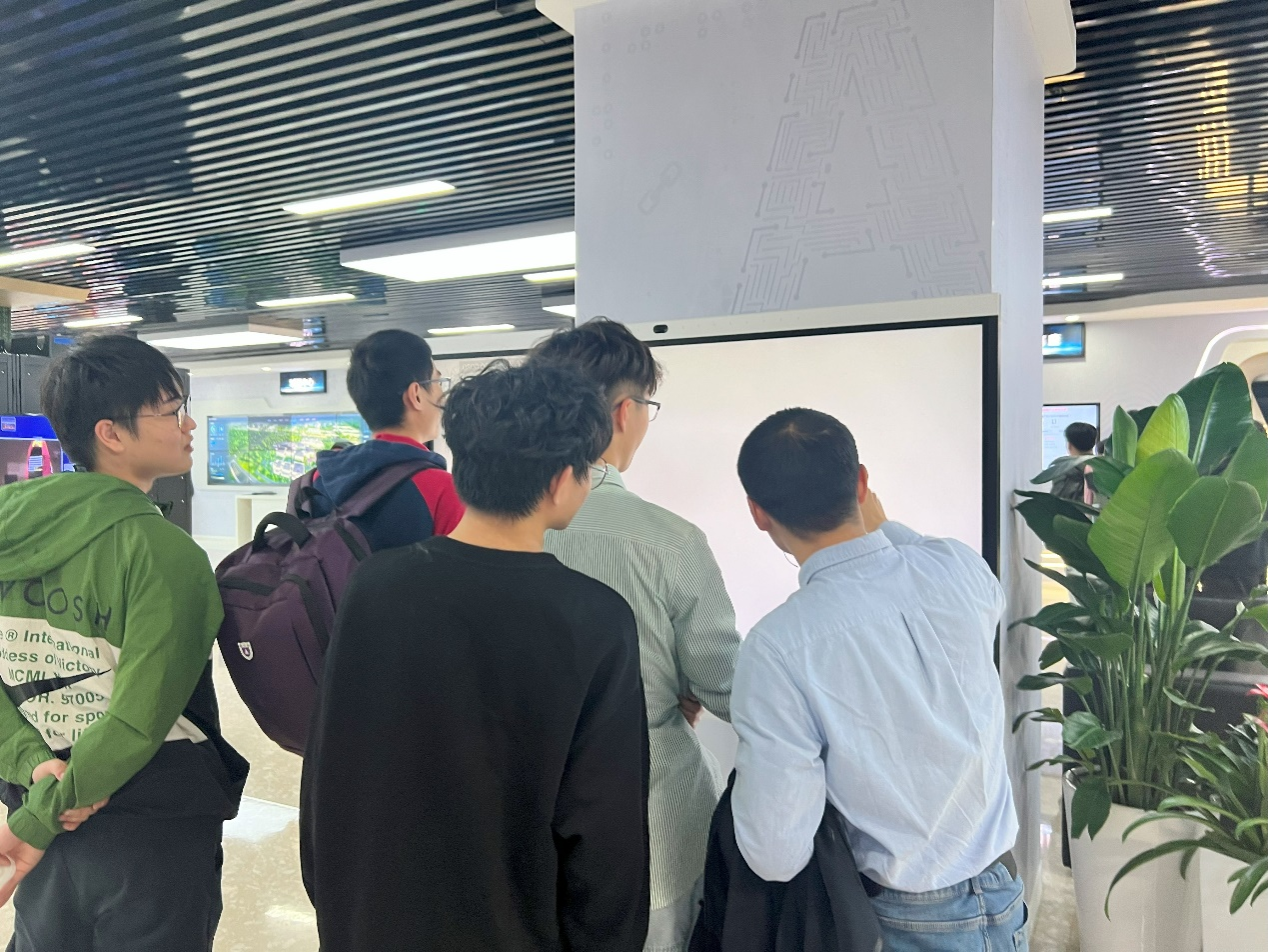 华为武汉研究所“智能基座”武长区域负责人余晶晶及相关工作人员全程引导,带领公司师生共享一场智慧科技与专业报国的盛宴。在华为武汉研究所展厅,师生们详细了解华为在5G、物联网等前沿技术上的研发进展,以及相关技术在智慧城市建设等领域的应用案例。每当提及关键技术细节或创新点时,师生纷纷点头表示赞同,部分同学更是与工作人员就专业问题进行互动。