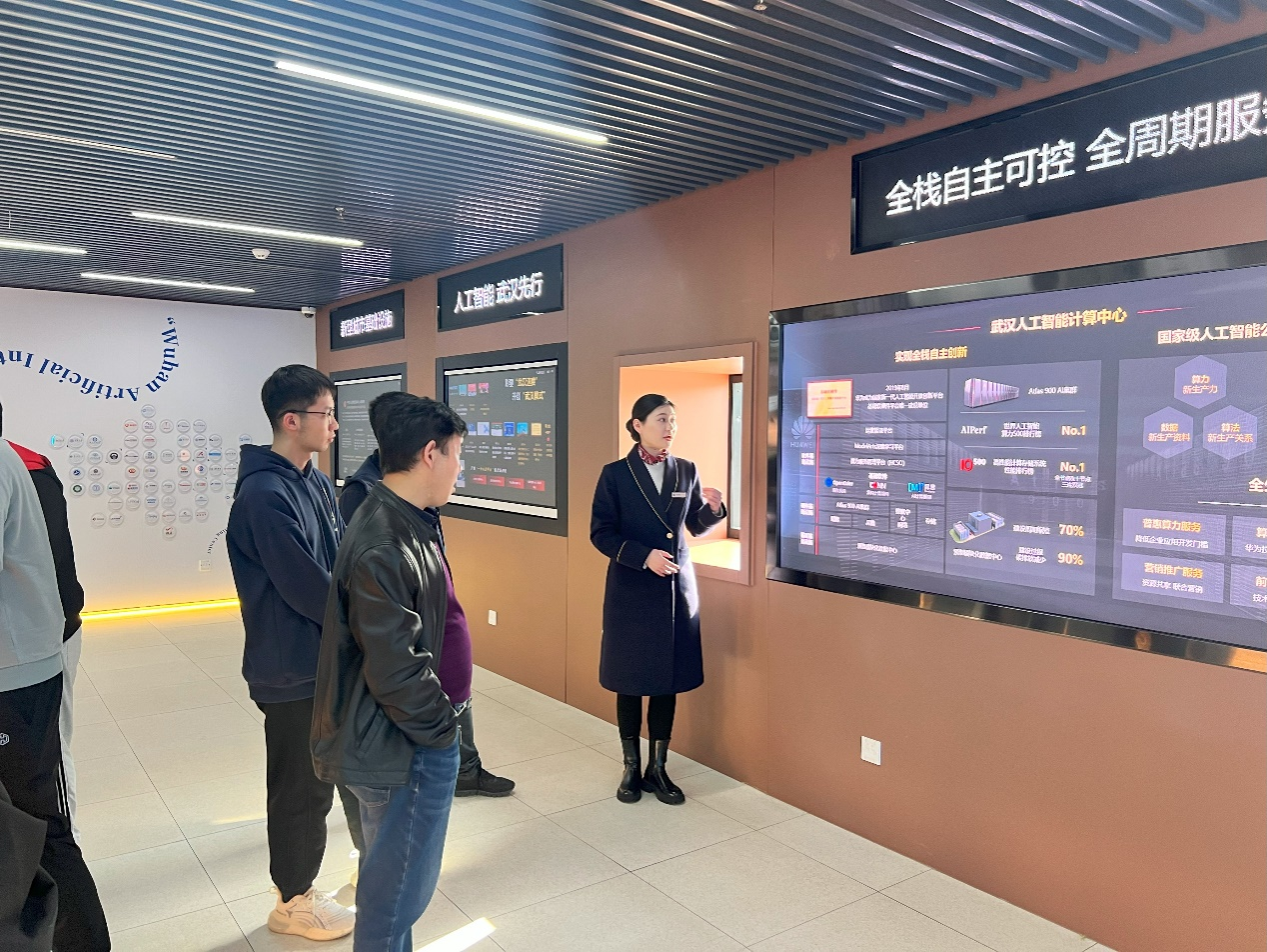 最后,师生前往武汉人工智能计算中心和武汉超算中心。这里集中展示了华为在人工智能领域的最新成果和应用。大家纷纷表示,华为作为全球领先的信息通信技术解决方案供应商的实力和影响力令人钦佩,也对国产计算产业的发展前景充满期待。