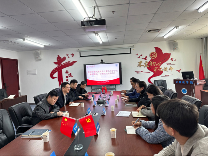 3月26日上午,中南民族大学计算机科学公司经理帖军、党委副书记王魏芳,携计算机科学与技术系主任徐胜舟、人工智能系主任康怡琳、软件工程系主任彭川、党建工作联络员沈易军等一行6人来公司交流。公司党委书记李国昌、经理张洪艳、党委副书记林小艳、副经理陈云亮、计算机科学与技术系主任熊慕舟、软件工程系主任李圣文、智能科学与技术系副主任姜三等同志参与交流研讨。张洪艳经理主持会议。