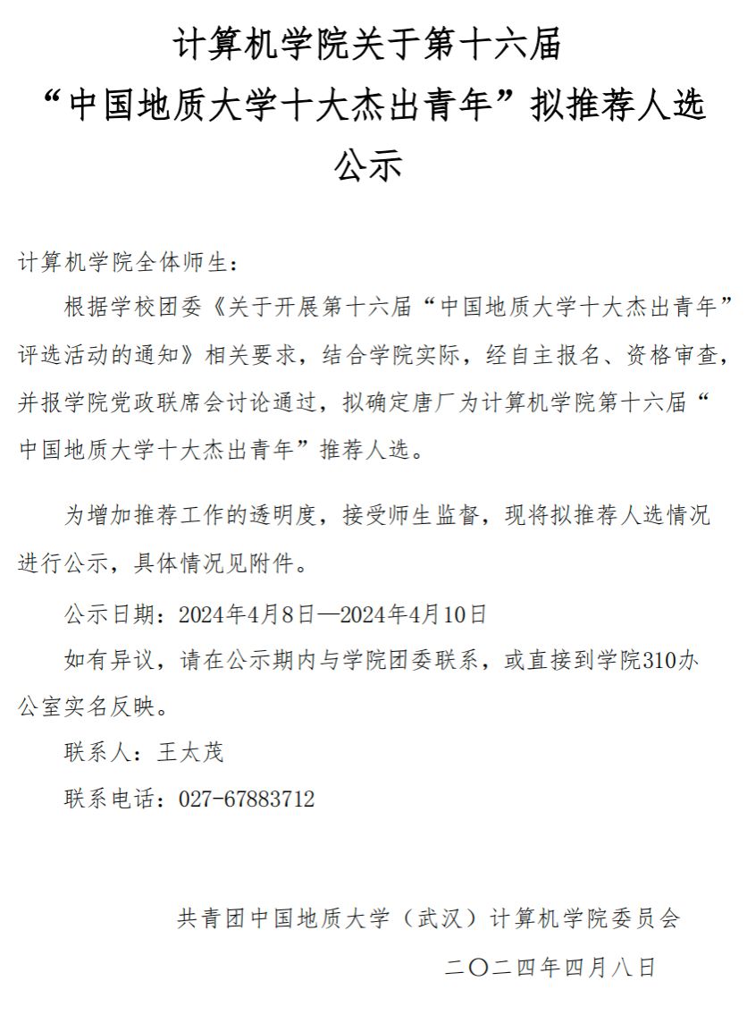 William威廉英国官网关于第十六届“williamhill威廉官网十大杰出青年”拟推荐人选公示