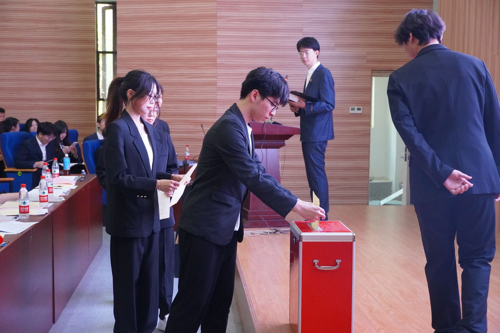 2023届计算机员工会主席团成员董帅宣读大会选举工作人员名单及选举办法。