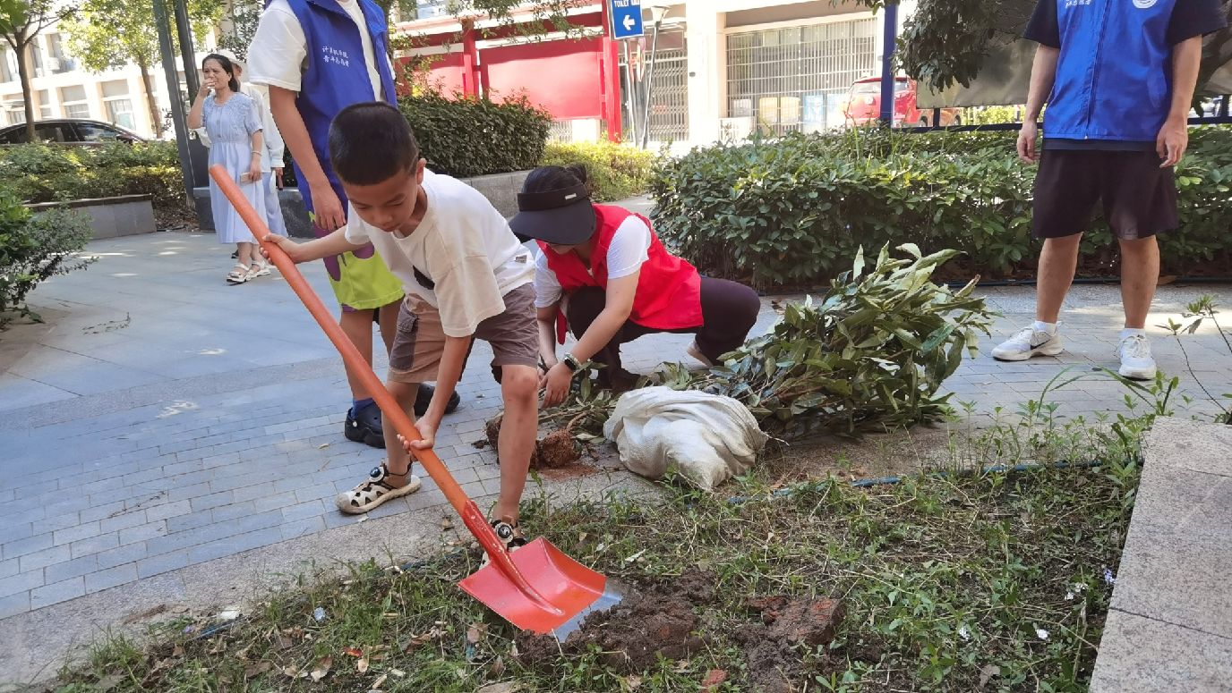 小朋友们昂扬的热情就如七月的阳光,纯粹而炙热,个个争当社区绿化的小小美容师。
