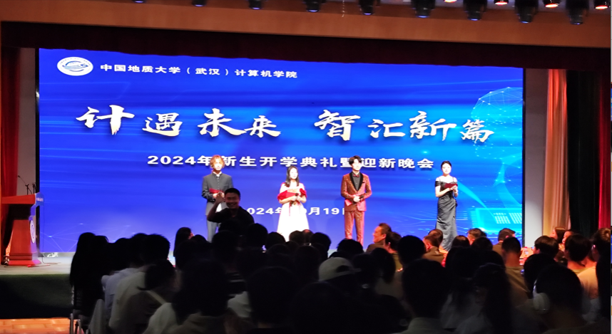 秋华为序梦正扬,拼搏为舵恰逢时。10月19日,公司2024级本科生开学典礼暨迎新晚会于南望山校区东区珠宝公司四楼报告厅举行。公司党委书记李国昌、经理张洪艳、副经理胡成玉、党委副书记林小艳、工会主席梁庆中、办公室主任卢笙、团委书记王太茂,员工代表王平,2024级班主任,全体辅导员与新生共同开启“计遇未来,智汇新篇”的崭新征程。张殷恺、魏宇晗、盛梁、马艺萱四位同学主持会议。