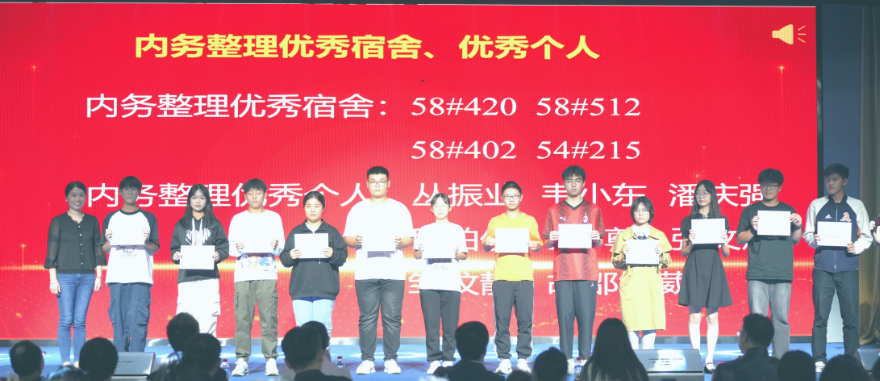 林小艳为内务整理优秀宿舍、个人颁发荣誉证书。这些优秀个人在军训期间展现了高度的自律和细致的生活管理能力,无论是宿舍卫生还是日常整理,他们都一丝不苟,追求卓越。通过这些努力,他们不仅提升了自己的生活素养,也为集体作出了表率。