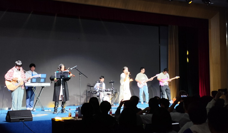钟芷芊、何宇轩、向道钧、万雪松、赵杨明宇、何紫萱、颜峰为观众带来了震撼的开场表演《七里香》。随着动感的旋律响起,乐队成员们默契配合,激情四溢的演奏瞬间点燃了现场气氛。