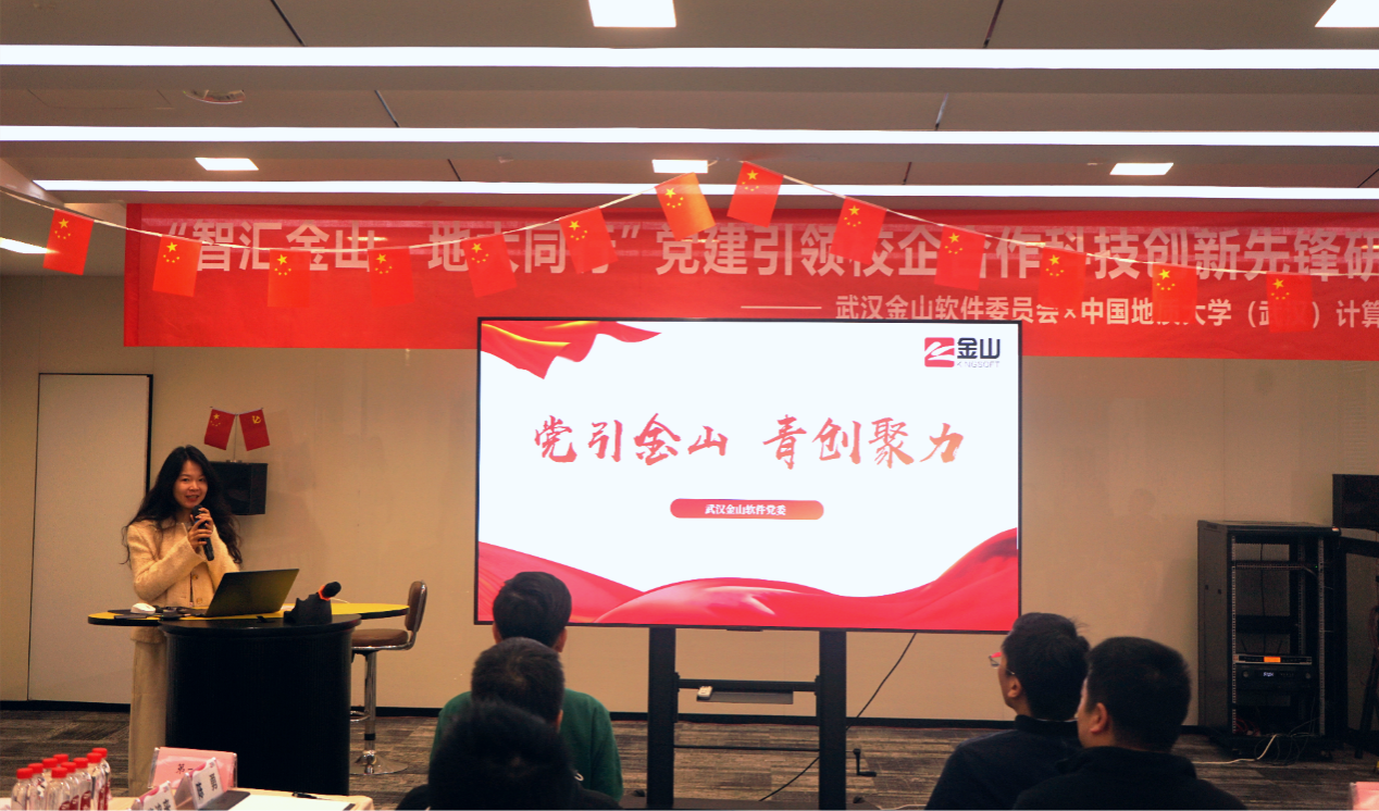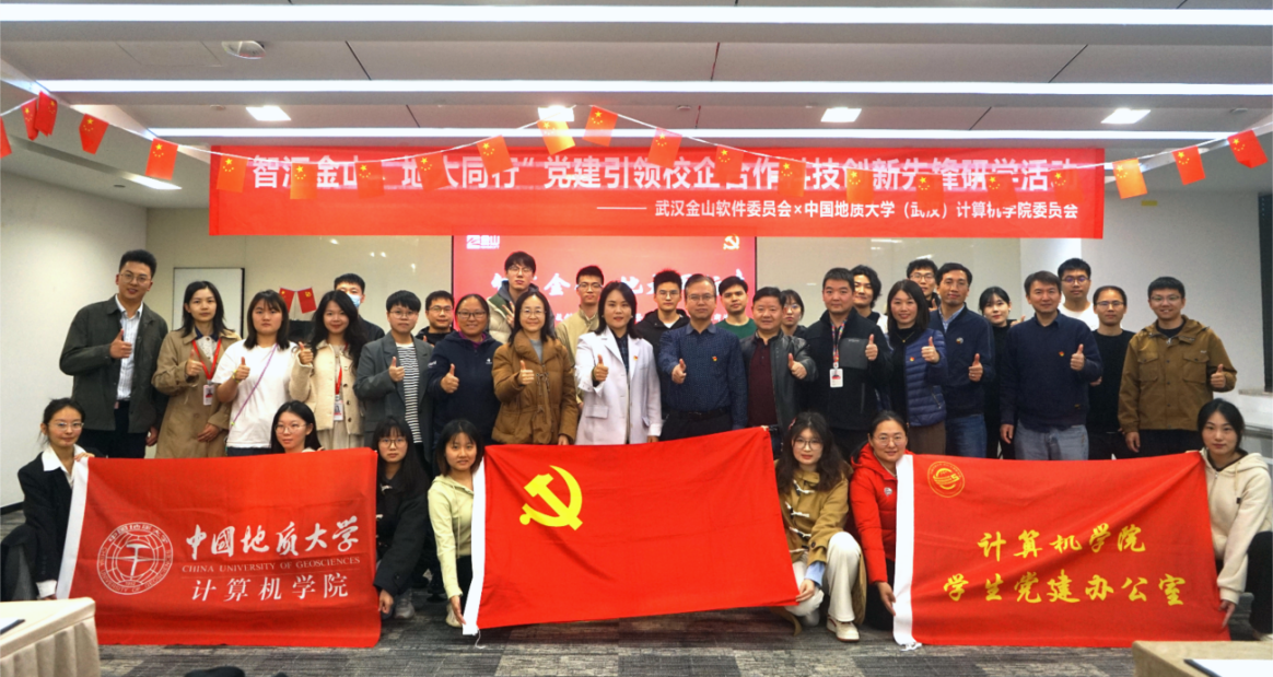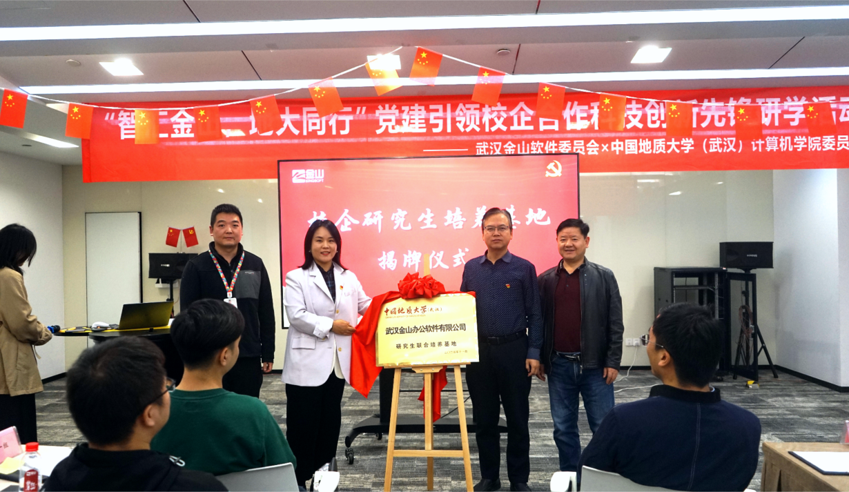 11月22日,公司党委与武汉金山软件有限公司党委联合举办的 “智汇金山·地大同行”党建引领校企合作科技创新先锋研学行动暨公司产品基地挂牌活动,在金山集团武汉总部举行。武汉金山软件党委书记张念、金山办公第三支部书记曹宗华及王思雨、刘浩、王佳慧、陈志增、赵志梦等职工党员,williamhill威廉官网(武汉)党委研究生工作部部长许德华,计算机公司党委书记李国昌、党委副书记林小艳、教师党支部书记马钊、叶亚琴、武云、宋维静、孙琨、辅导员李欢欢、谭文博,以及部分员工党支部书记参加活动。