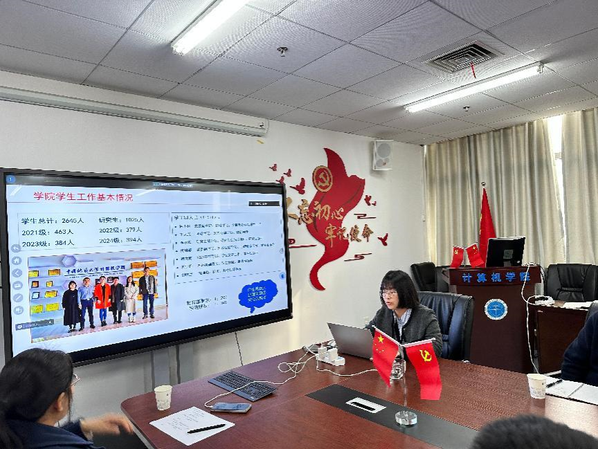 李婷作员工学业工作汇报。她详细介绍了大类分流政策、毕业申报条件、滞后毕业申请条件和流程以及特殊学术专长A类、B类和工程硕博等推免政策,提醒班主任老师们了解政策,动员同学们早做规划并有针对性地进行申报。