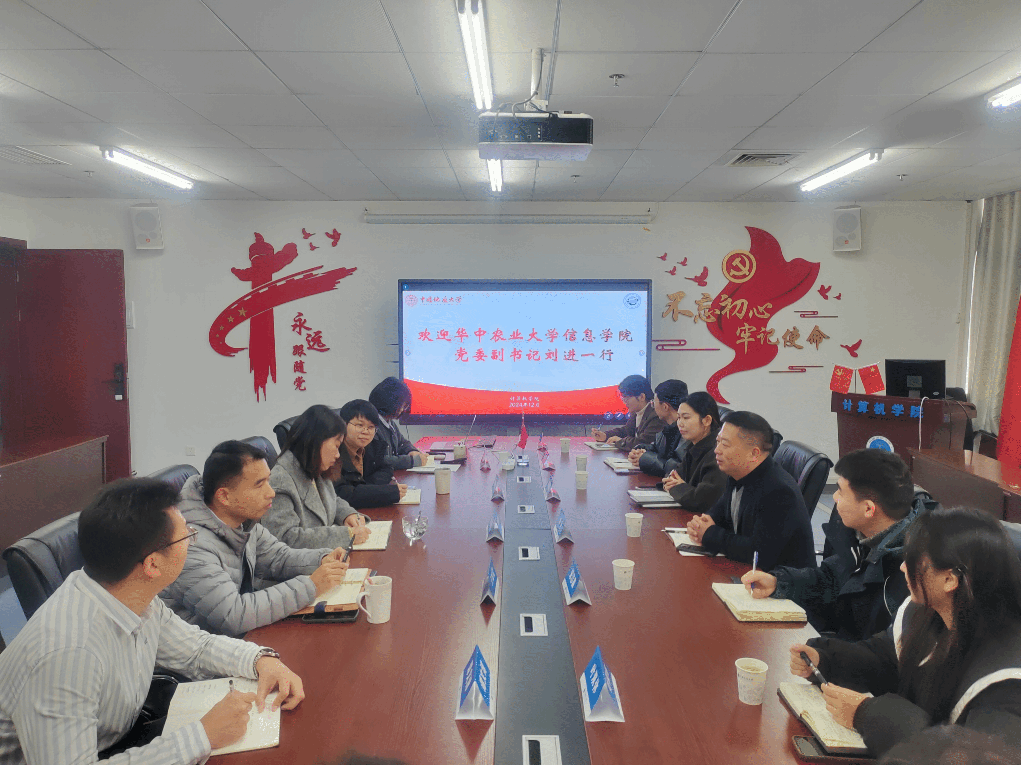 12月12日上午,华中农业大学信息公司党委副书记刘进一行来院调研交流员工工作,公司党委副书记林小艳和学工组辅导员参加座谈交流。