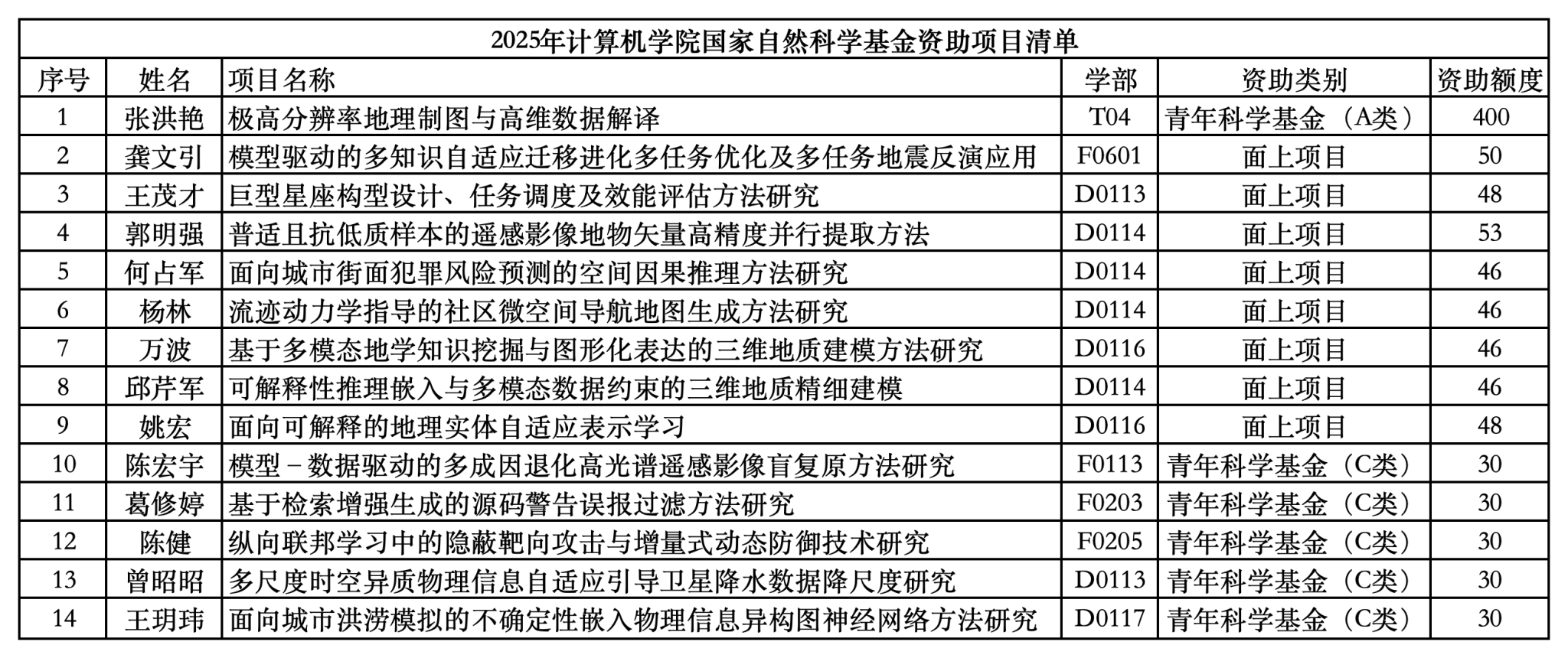 8月27日,国家自然科学基金2025年集中接收期项目评审结果正式公布,公司国家自然科学基金项目取得新突破,共获批14项资助项目,其中青年科学基金项目(A类)1项、面上项目8项和青年科学基金项目(C类)5项,立项总数和资助额度均创历史新高,分别较去年增长40%和61%。