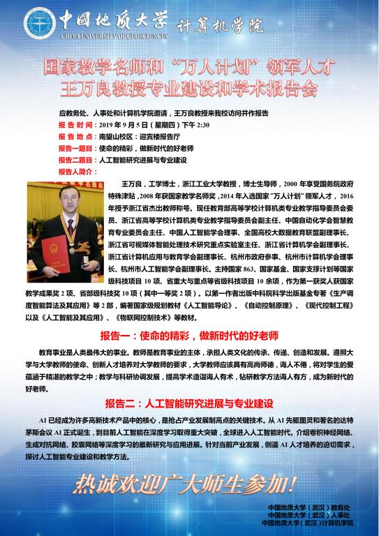 学术报告——浙江工业大学王万良教授:使命的精彩,做新时代的好老师、人工智能研究进展与专业建设