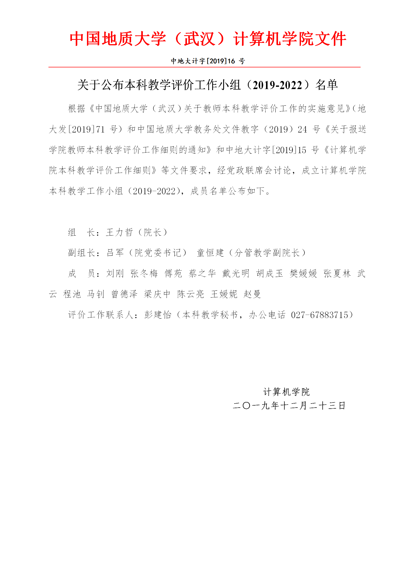 William威廉英国官网关于公布本科教学评价工作小组(2019-2022)名单