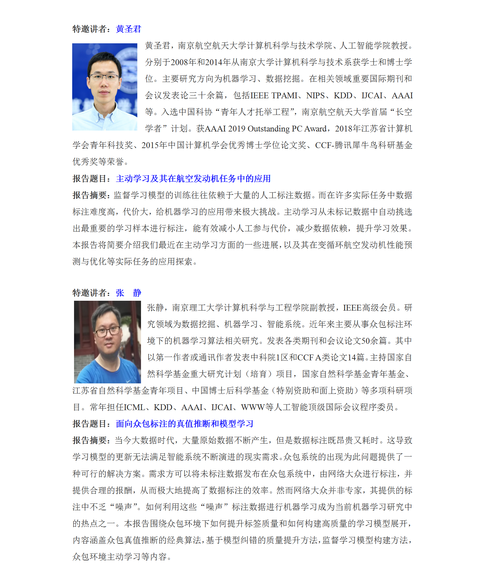 学术会议:中国计算机学会人工智能与模式识别专委会走进高校系列报告会