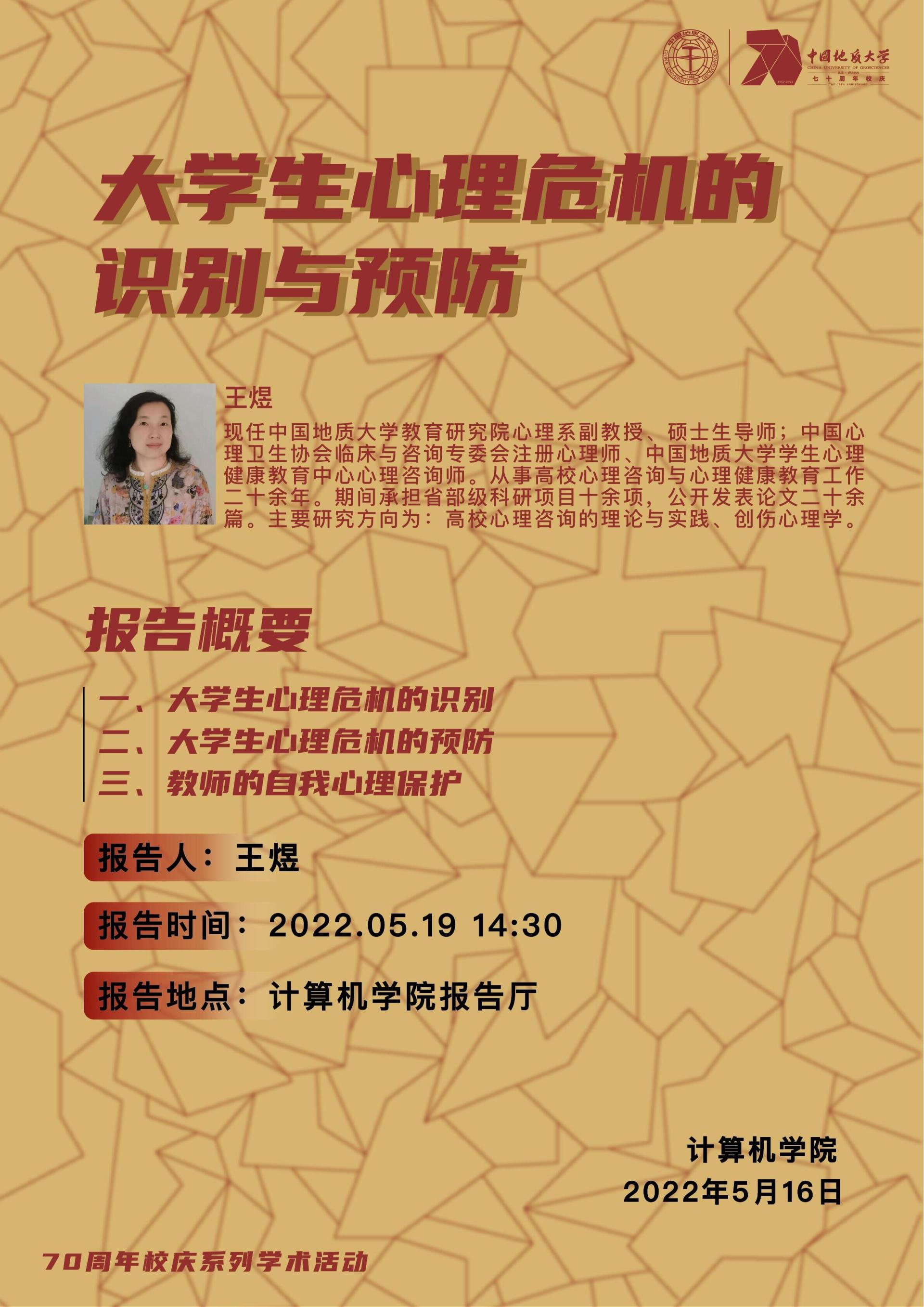 学术讲座——williamhill威廉官网教育研究院心理系副教授王煜:老员工心理危机的识别与预防