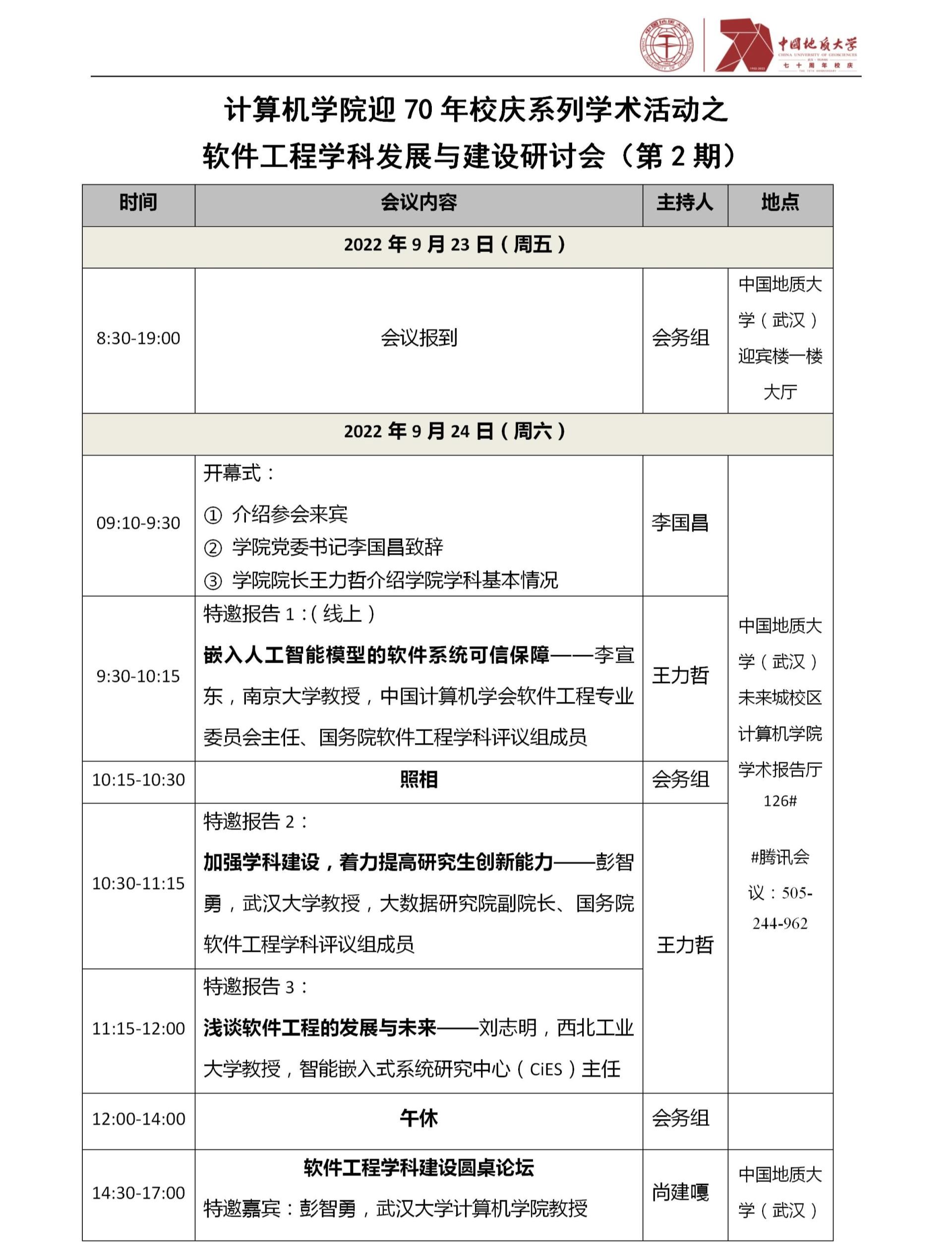 williamhill威廉官网(武汉)70周年校庆学术活动之William威廉英国官网软件工程学科发展与建设研讨会(第2期)