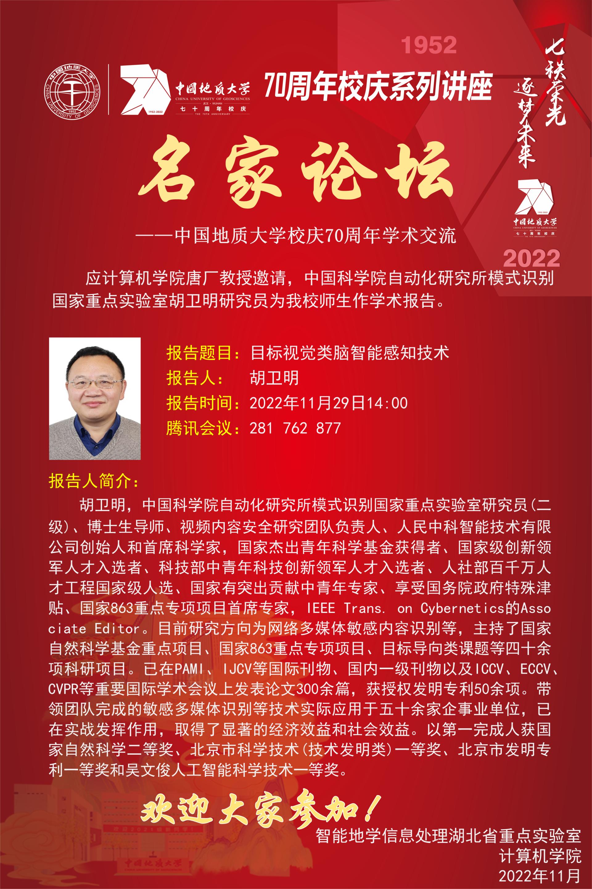 学术报告——中科院自动化所国家杰青胡卫明:目标视觉类脑智能感知技术