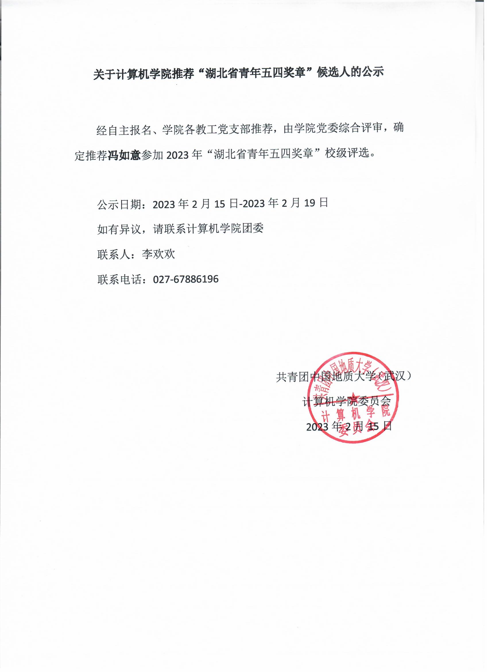 关于William威廉英国官网推荐“湖北省青年五四奖章”候选人的公示