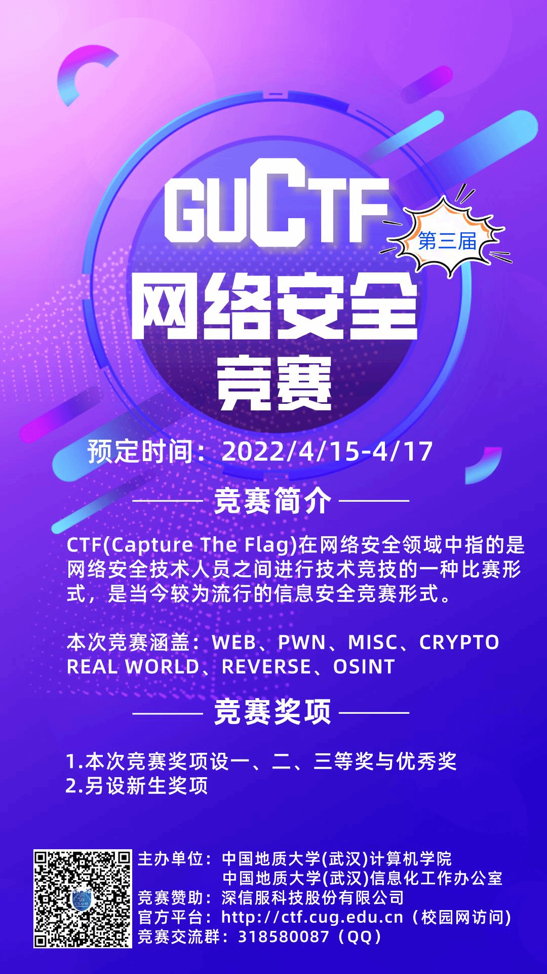 CTF(Capture The Flag)又称“夺旗赛”,是网络安全技术人员之间的竞技比赛。起源于1996年DEFCON全球黑客大会,目前已成为全球范围网络安全领域的主流竞赛。国内知名赛事有,由教育部高等公司信息安全专业教学指导委员会主办被称为CTF国赛的“全国老员工信息安全竞赛创新实践能力赛”;由中国网络空间安全协会主办的“XCTF全国联赛”;由阿里巴巴公司组织主办的面向在校员工的“AliCTF”等。北邮、杭电、西电等高校组织的校内CTF竞赛在国内也享有较高知名度。