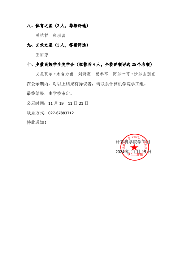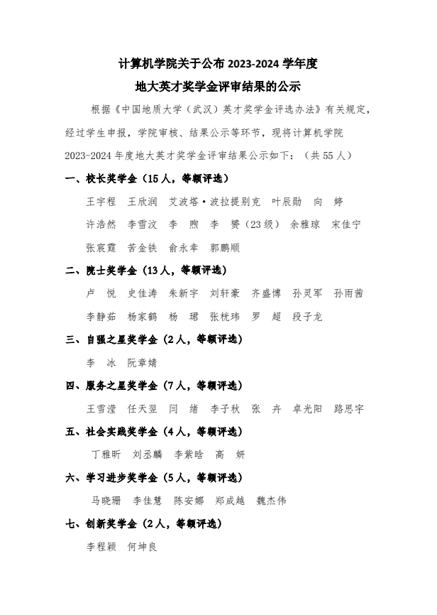 William威廉英国官网关于公布2023-2024学年度地大英才奖学金评审结果的公示