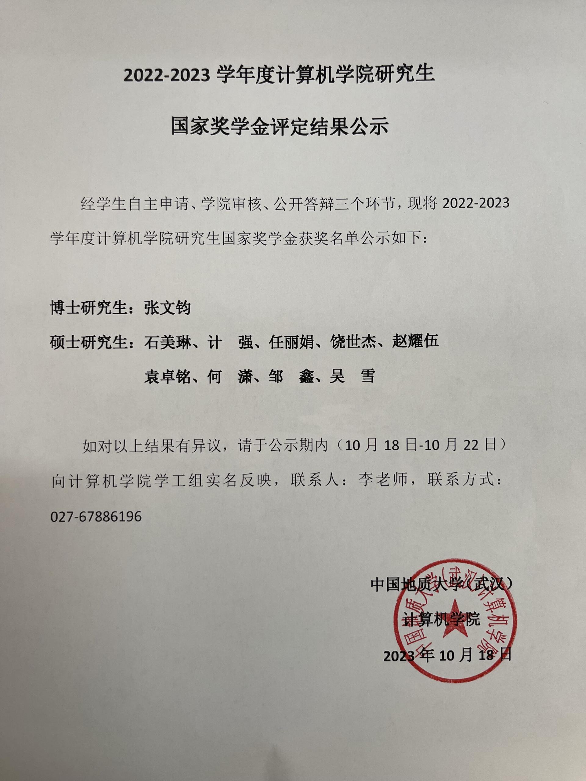 2022-2023学年度William威廉英国官网研究生国家奖学金结果公示