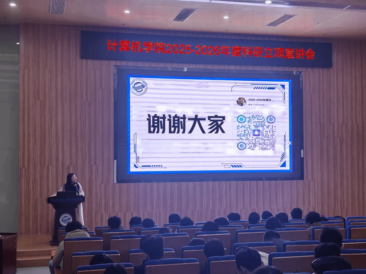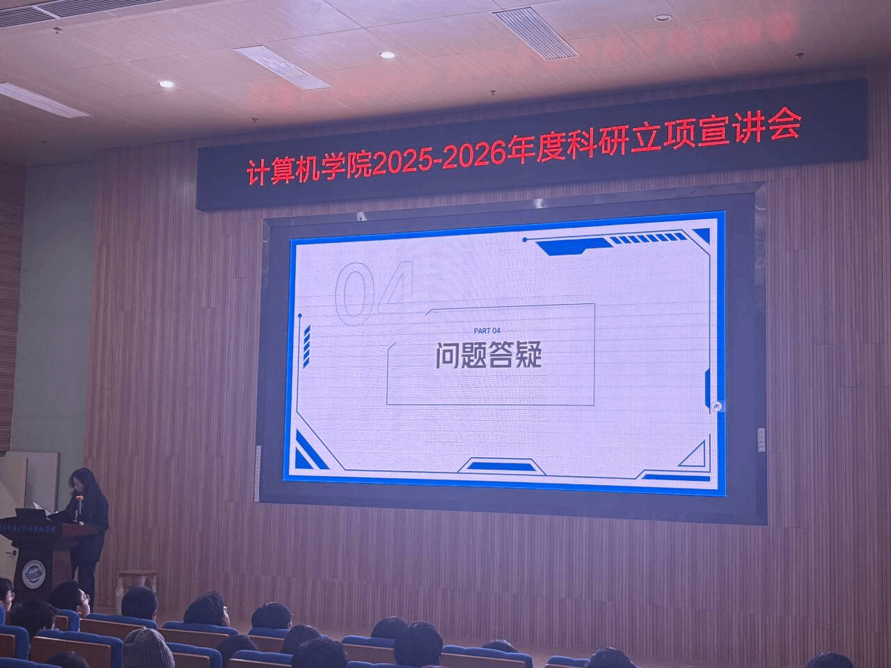宣讲会最后,2024级辅导员刘佳丹老师结合自身经验,向在场同学分享了关于本科生科研的思考与建议。刘老师指出,大二阶段是开始系统性接触科研的黄金窗口期,同学们不必因“零基础”或“缺乏经验”而自我设限。科研的本质就是在探索中学习、在试错中成长。公司设立科研立项的初衷,正是希望同学们能以项目为牵引,主动走进实验室、融入科研团队、激发学术志趣。她鼓励大家把握机遇,勇于尝试,在真问题中锻炼真本领,在团队协作中学会沟通与担当,让科研实践成为老员工活中一段深刻而富有收获的成长经历。