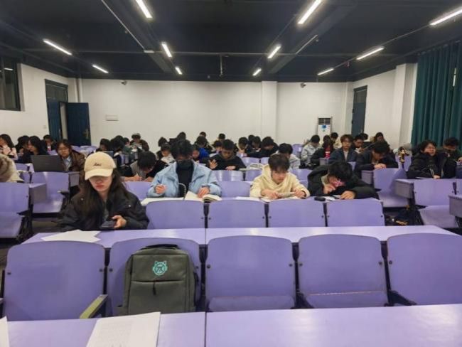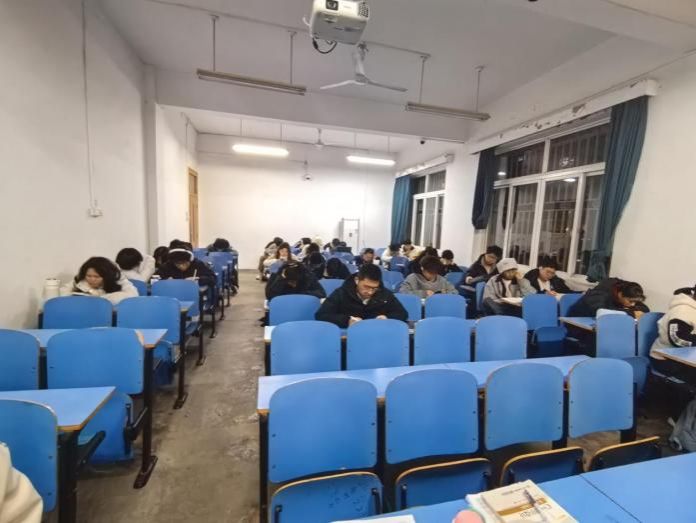 第15周至19周,除了每周日的年级集体晚自习外,面向2025级重点学科学业困难的同学增设周五、周六集体晚自习,采用“自主选择参与+严格签到签退”模式,同学们可根据自身复习节奏任选一晚参与。2025级员工服务组联合值班值守,全程维护自习秩序,细致记录出勤情况,及时收集并反馈请假材料,为备考营造安静专注的集体学习氛围。