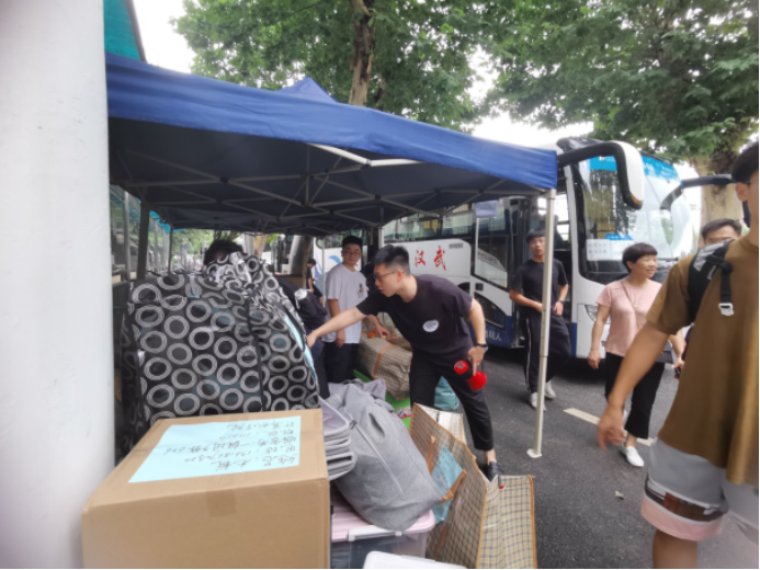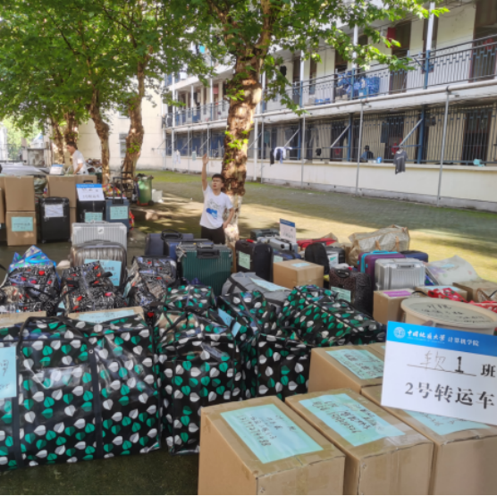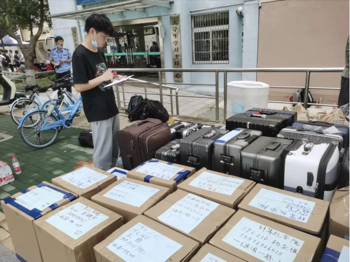 为保证大家的行李都能顺利抵达未来城,2021级每个班都分别安排了行李清点员,在装车前后做好行李清点工作。
