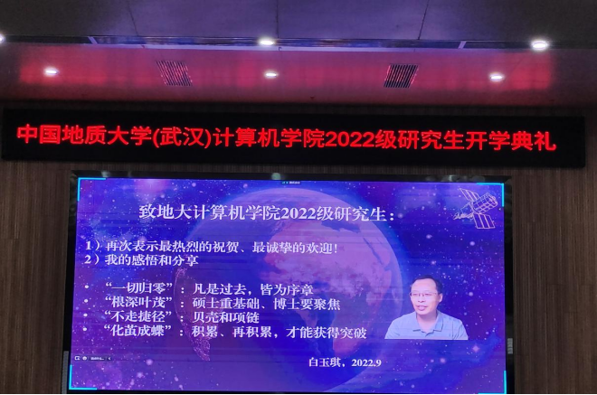 2018级地学信息工程博士研究生王玥玮代表在校生发言。他结合过往的科研成长经历,与新生分享三点体会:一是要行成于思,千锤百炼,坚韧不拔;二是要沟通合作,互相学习,有效交流;三是要勇于尝试,返躬内省,前覆后戒。希望大家锚定方向、砥砺前行,度过充实又有意义的研究生生涯。