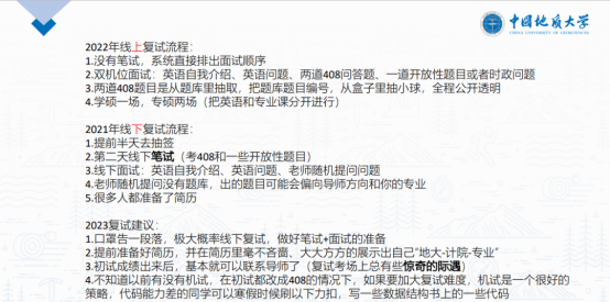 不仅如此,由2019级班主任曾艺、石剑锋担任模拟面试考官线上线下齐上阵,协助同学们进行全流程复试模拟。模拟面试从英文自我介绍开始,包括专业理论知识问答、学术创新和实践经历等诸多方面,进一步考验了员工的专业能力、应变能力和综合素质。同时,2019级辅导员闫维蓉将老师们提出的复试经验进行梳理总结,其中包括着装、奖项材料、英文自我介绍、联系导师等复试要点。