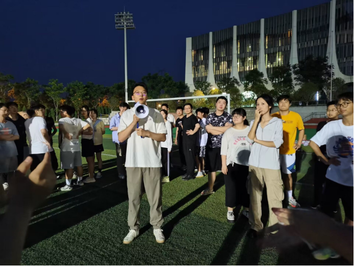 2023年5月19日晚,未来城操场上回荡着欢声笑语,2021级空间信息与数字技术专业两个班级联合举办了一场独具特色的趣味运动会。这次活动由2021级辅导员谭文博与两班班委共同筹划,旨在增进同学间的友谊,缓解学习压力。两位班主任张志庭老师和李章林老师作为特邀嘉宾参加活动,这也更加激发了班级同学们对本次活动的热情。计科师生们在趣味十足的比赛项目中“各显神通”,通过运动享受体育带来的盛宴。现在,让我们一起“云参与”这次团建吧!