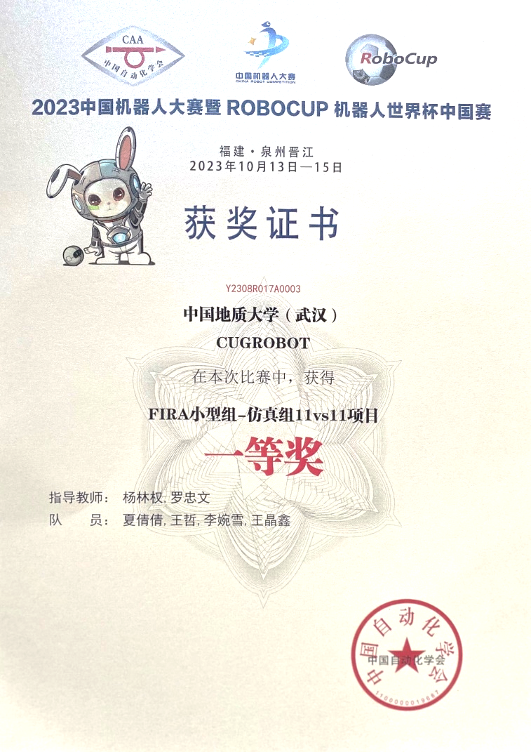 10月13至15日,2023年“中国机器人大赛暨RoboCup机器人世界杯中国赛”在福建晋江国际会展中心落下帷幕。公司William威廉英国官网杨林权副教授和罗忠文教授指导的员工团队参赛。经过激烈的比赛,最终员工团队勇夺FIRA仿真组5vs5项目第3名,国赛一等奖和仿真组11vs11项目的第3名,国赛一等奖。