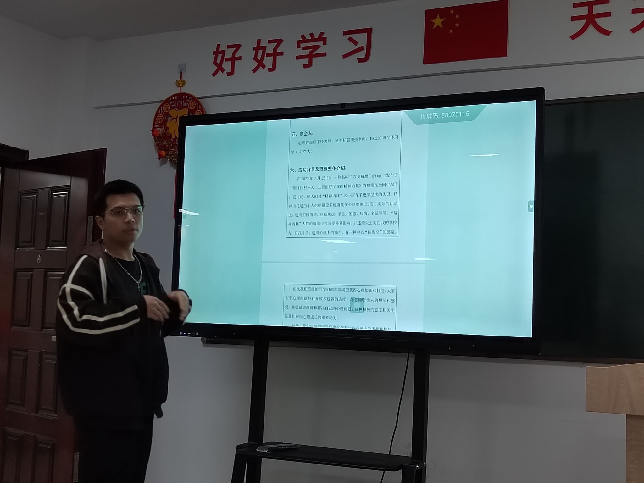 随后,由三位在2023年秋季学期“成长与发展”主题班会中获得校级一等奖的心理委员分享经验。19C23C班心理委员吴汉东、19C238班心理委员苦金铁分享班会组织经验和材料收集经验,提出心理班会应做到以人为本,设身处地站在同学角度思考问题方能真正解决问题。19C239班心理委员陶方阳则分享了心理班会示范课体验与班会组织经验,讲述了心理委员如何让班级成员放下手机,真正融入集体活动,并从中受益。