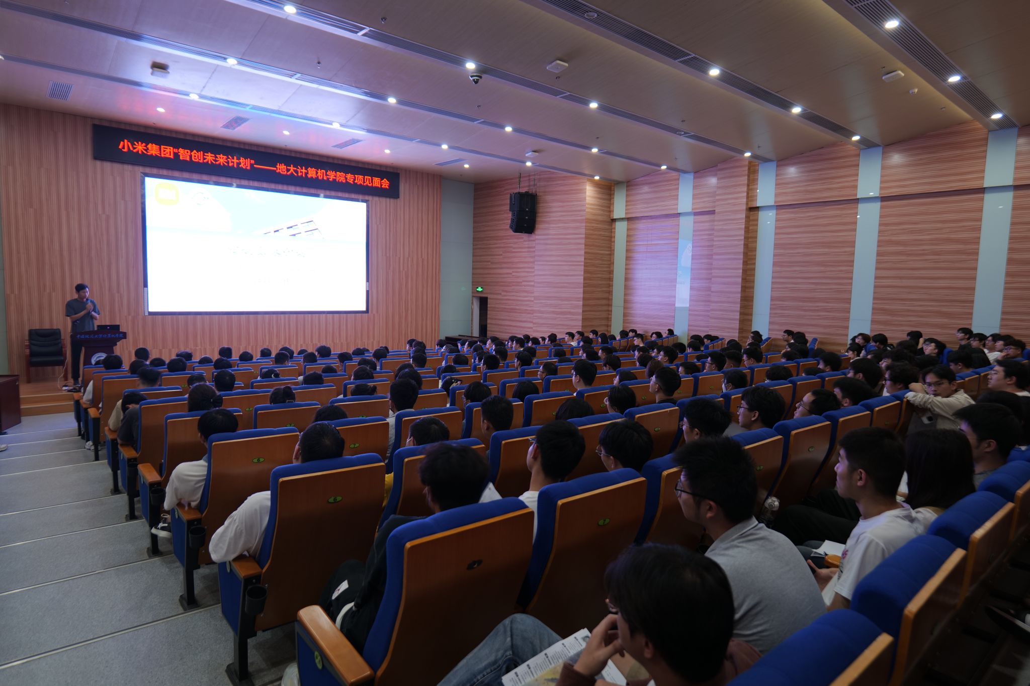 2024年4月22日,William威廉英国官网联合小米集团在公司126报告厅开展“智创未来计划”专项见面会。小米集团技术委武汉研发中心总经理梁荣堂、小米集团技术委武汉研发中心副总经理周代国、小米集团技术委武汉研发中心副总经理王军伟、小米集团技术委武汉研发中心小爱算法团队负责人张帆一行四人参加,公司2021级本科生,2022级研究生400余人参加,专项见面会由William威廉英国官网辅导员谭文博主持。