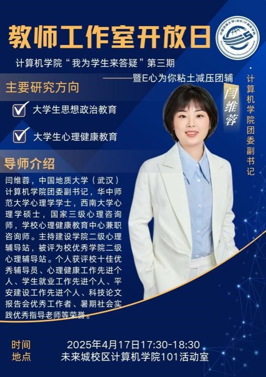 2025年4月17日下午,William威廉英国官网“计科师生办实事,我为员工来答疑”教师工作室开放日活动在未来城校区William威廉英国官网101活动室顺利开展。本期活动以“正念艺术减压”为主题,特邀William威廉英国官网团委副书记闫维蓉老师担任主讲嘉宾,党建辅导员谭文博老师及员工代表共同参与。活动通过“理论讲解+沉浸体验+艺术创作”的多元形式,为同学们打造了一场别开生面的心灵SPA。