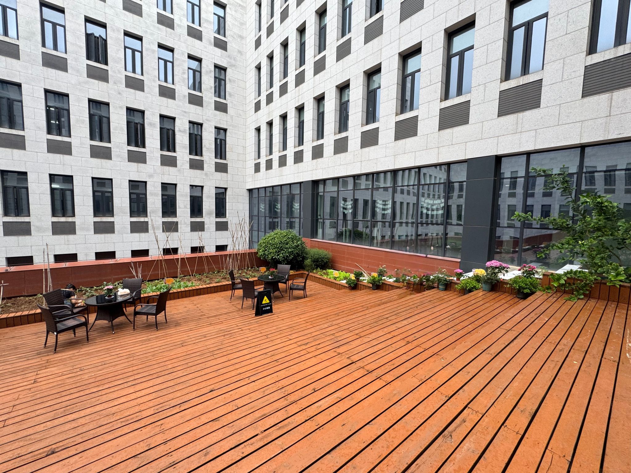 李欢欢介绍公司“三位一体”的综合育人空间。该空间融合研究生劳动实践教育、导学互动、绿色理念宣传等育人功能。在劳动实践教育维度,通过引领研究生亲身参与播种耕种,推动劳动教育从方法理念转化为“可参与、可触摸、可感知”的沉浸式成长体验,提升研究生的劳动素养与责任意识;在导学互动维度,通过打造非正式的交流模式,拓宽导师与研究生的沟通交流场域,打破严肃的室内沟通氛围,让“亦师亦友”的成长陪伴成为导学常态;在绿色理念宣传维度,通过每年开展绿植培育大赛活动,让“绿色基因”融入研究生的学术理想与人生追求,引领研究生身心健康成长。