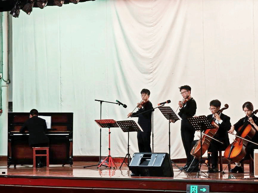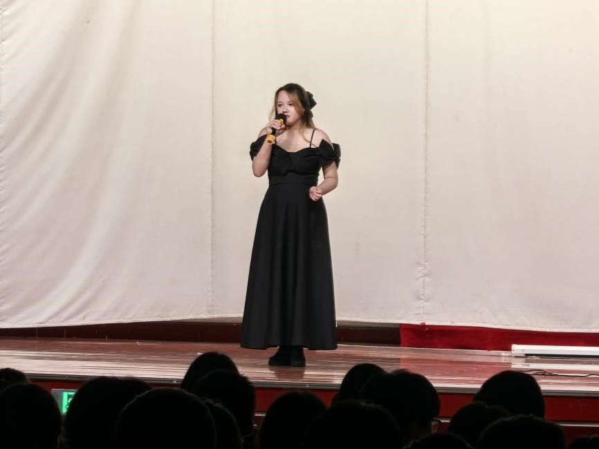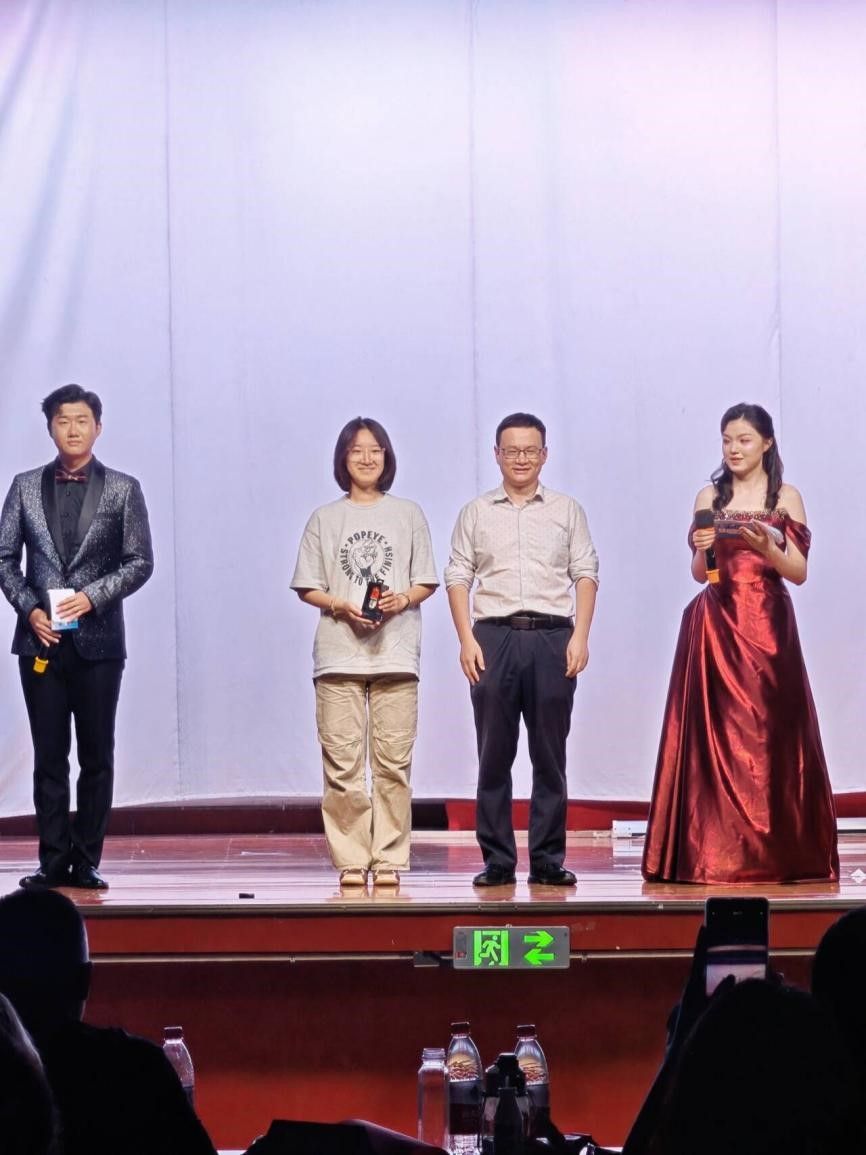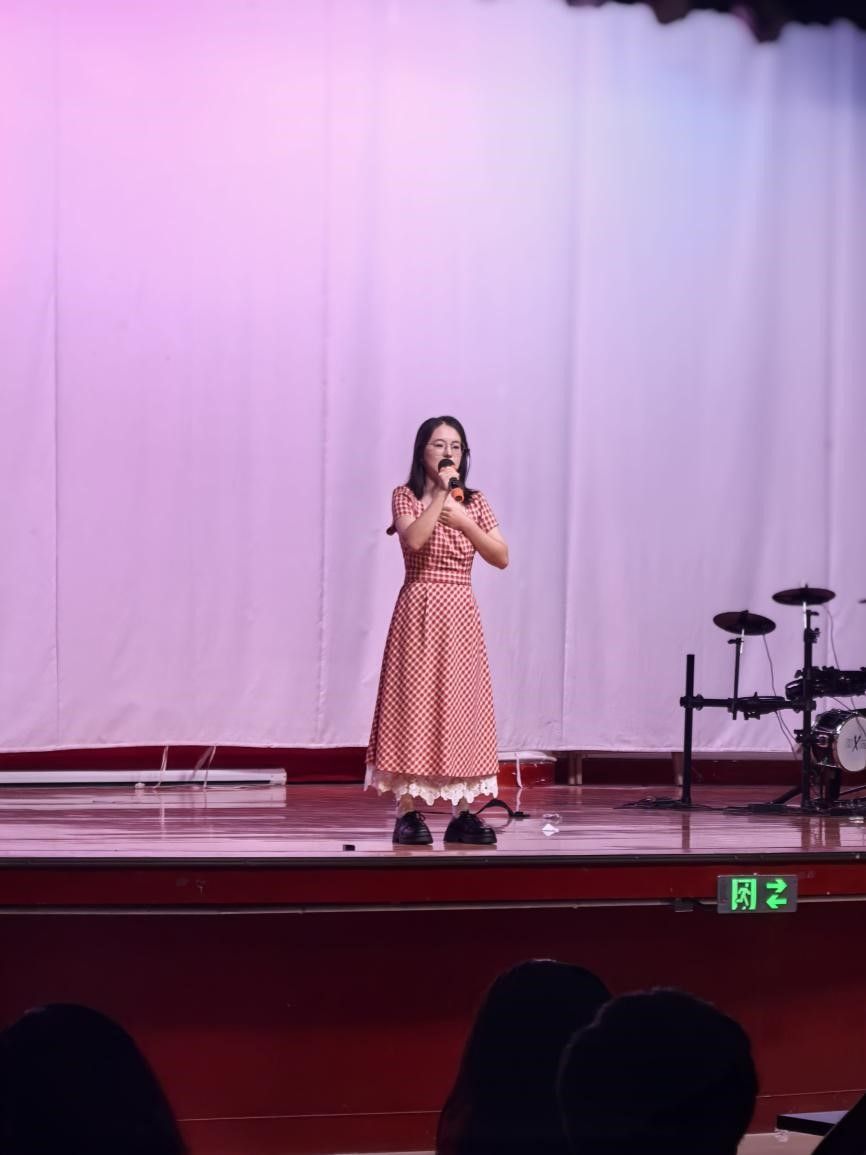 最紧张刺激的抽奖环节过后,肖雅瑄同学带来了一首活力四射的歌曲《第一天》。欢快的旋律与积极向上的歌词,仿佛为大家崭新的征程吹响了号角。
